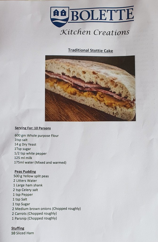I took a copy of the recipe to share with you – maybe you can make it for yourself or family and friends one day! I would recommend a good quality ham for this. I use turkey ham when I have this at home and I’ll admit I don’t make any of it, I buy the lot! My pease pudding must come from the local market or somewhere like Dicksons and I’ll only use Greggs stotties. I like to eat, I’m not very good at baking!